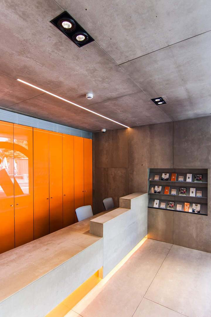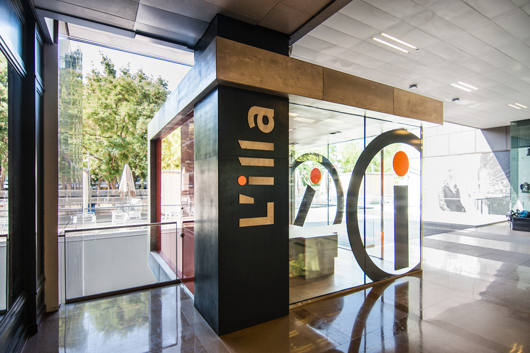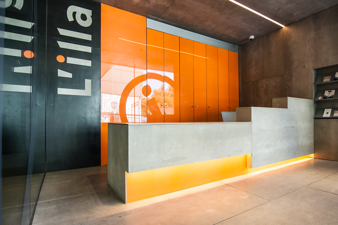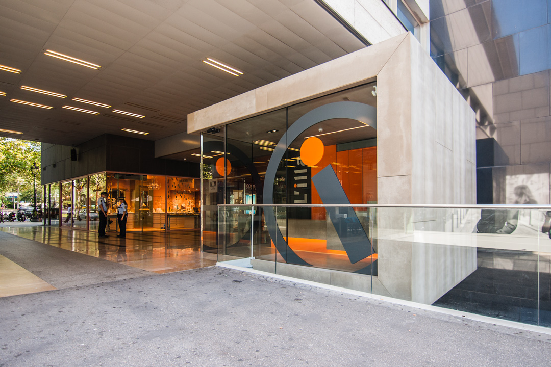 El proyecto nace de la colaboración de los arquitectos Javier Monte y Albert Lluch con Josep Ribas, Interiorista y de la necesidad del CC. “l’Illa Diagonal”, de reubicar el punto de información del Centro. Su situación, interfería en los flujos de circulación de los clientes del centro. La idea surge al apartarnos de estos flujos, y colgarnos sobre unos de los lucernarios que da a la planta inferior. Con un gesto de papiroflexia, se dobla el forjado, y lo que antes era suelo, se convierte en pared y más tarde cubierta. Ésta nueva lengua que sale del forjado necesita de una materialidad sólida, pétrea, que nos marca la elección del Viroc como aplacado en seco de la fachada. Pero el Viroc entra en el interior, y nos acaba formando estanterías y mostrador. El mostrador formalmente recuerda y se inspira skyline del mismo edificio de l’Illa.