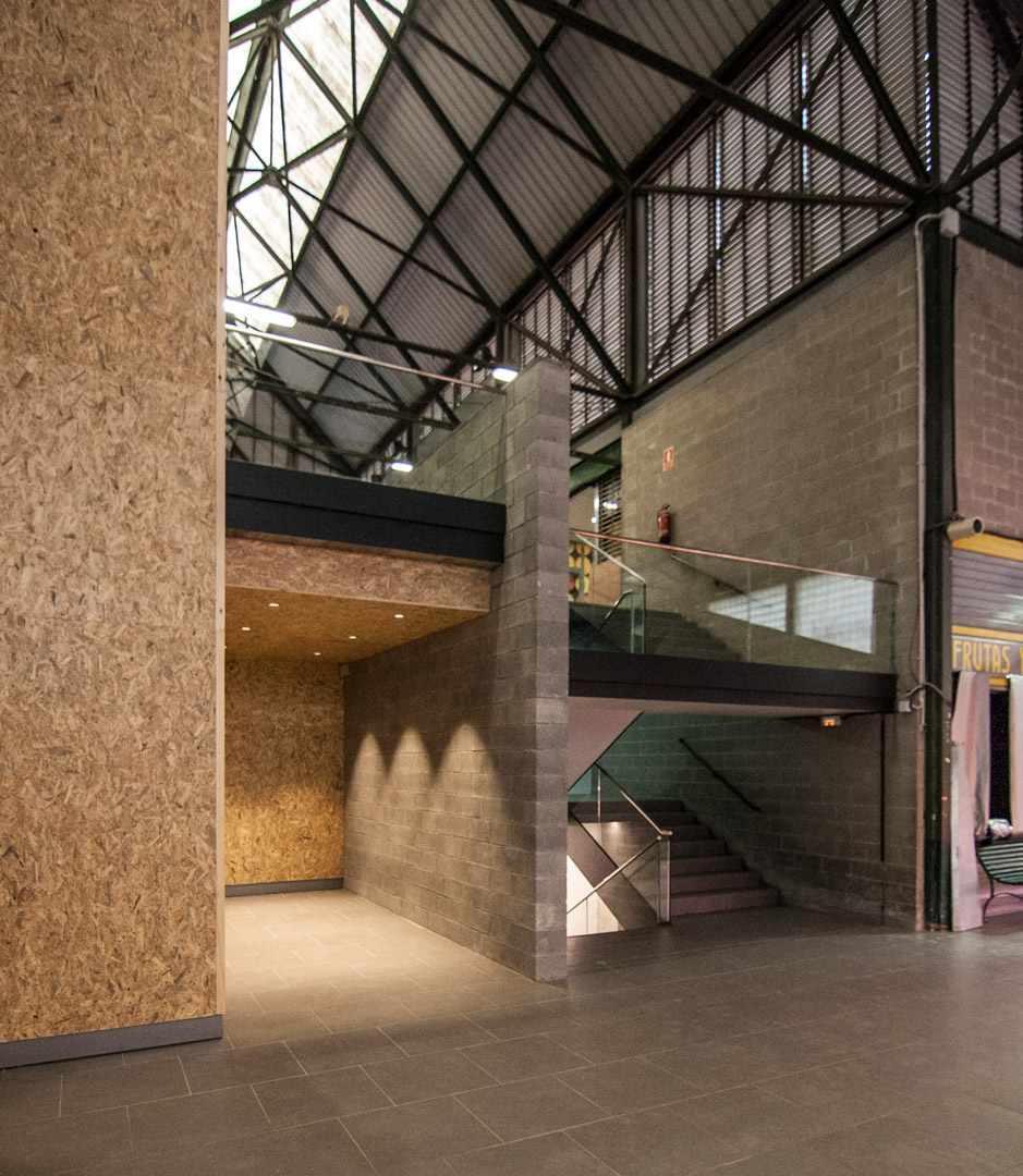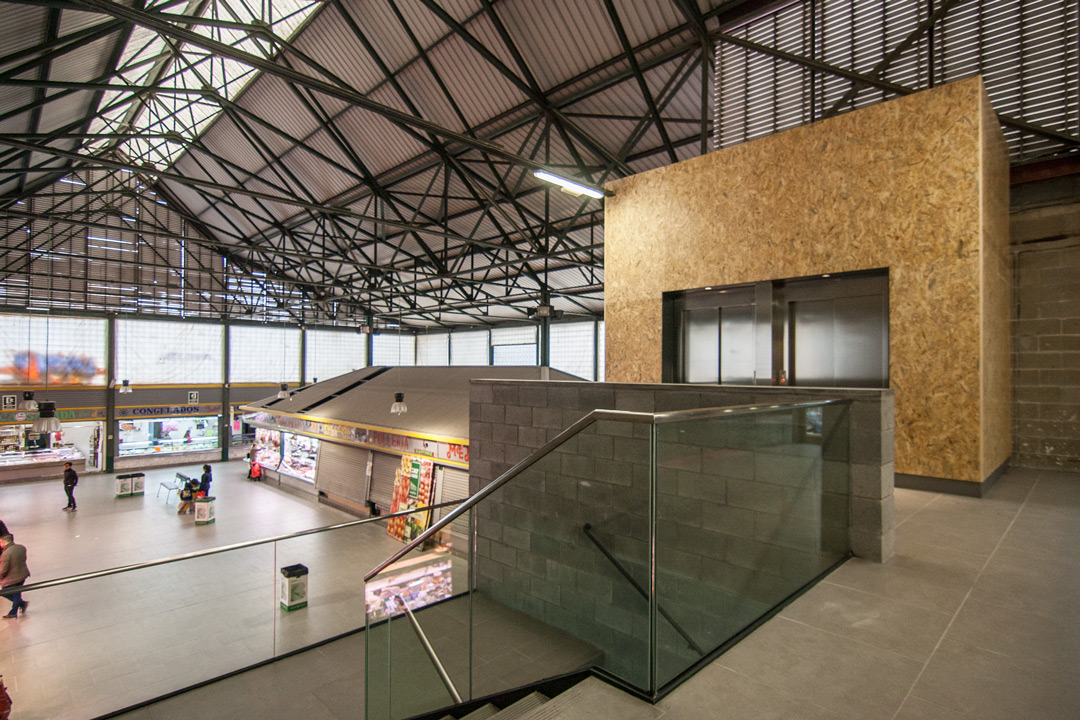 El proyecto derriba las rampas, creando un nuevo núcleo de ascensores y escaleras, que aprovechan y comunican todas las plantas, incluida la planta aparcamiento. “Ya que estamos”, se cambia el pavimento del Mercado y se realizan unos nuevos baños segregados y adaptados.