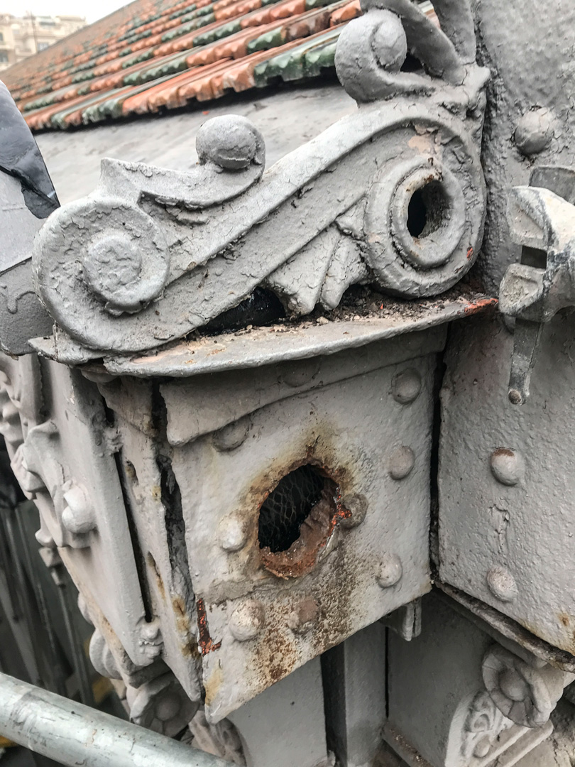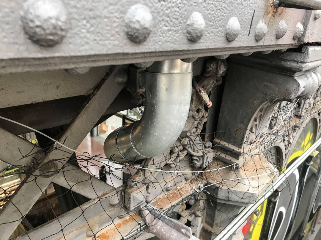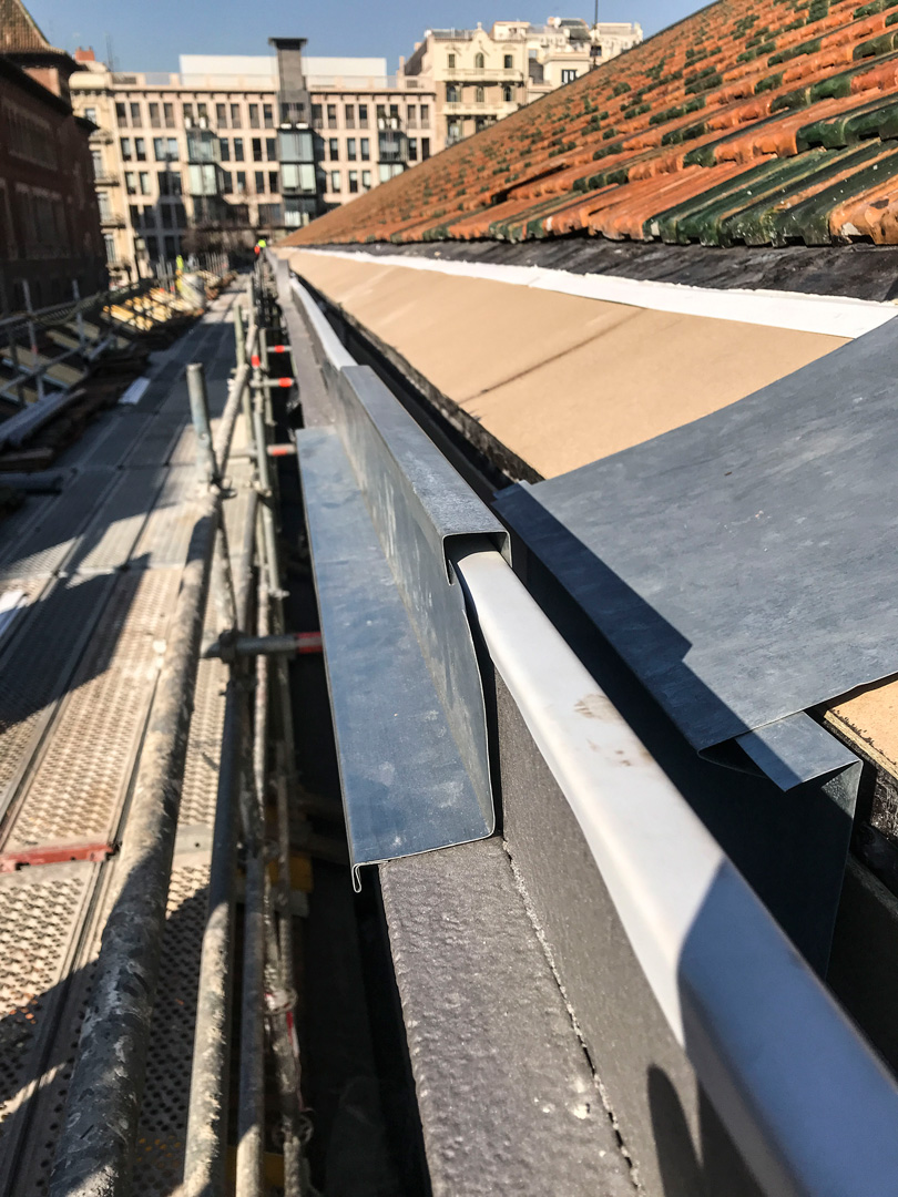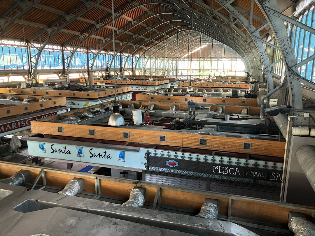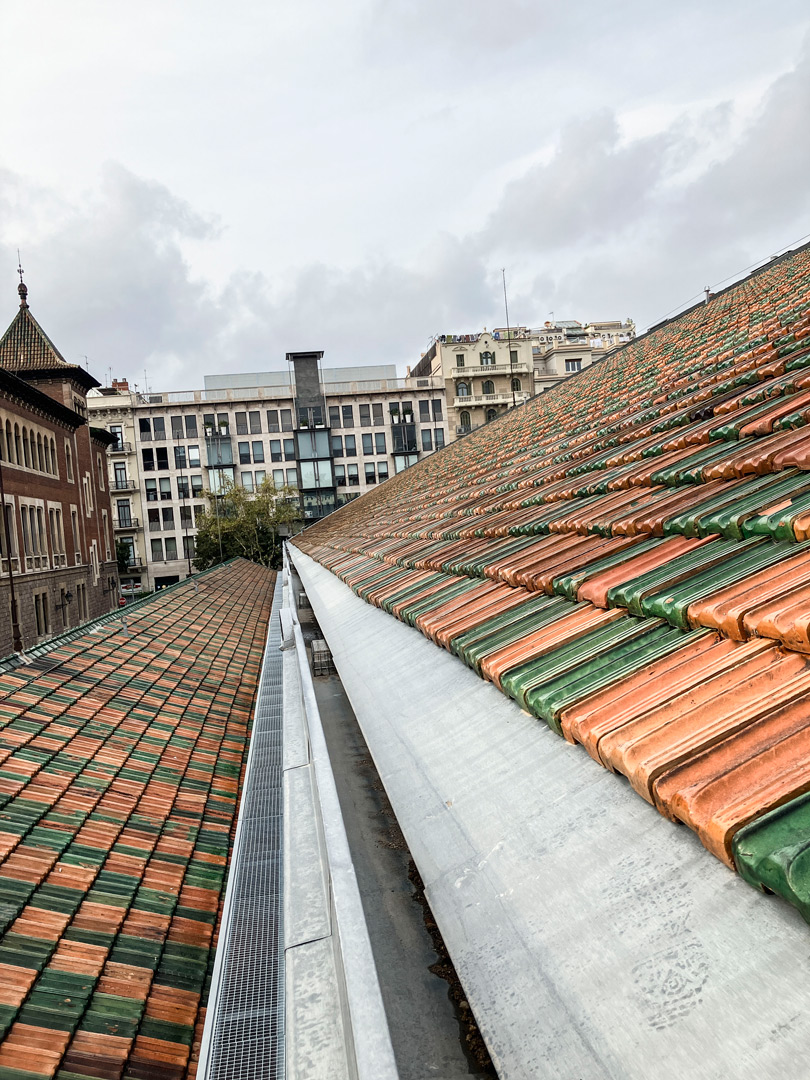 Mercats de Barcelona, se puso en contacto con Javier Monte y conmigo, para estudiar las causas del deterioro de los pilares de forja de mediados del siglo XIX. La causa era obvia, los días de lluvia la red de evacuación del Mercat colapsaba, y las cortinas de agua que se creaban, tenían amargados a los paradistas del Mercat. Proyectamos una nueva red de evacuación para la cubierta principal, reduciendo en 1/3 el agua que debía soportar la red actual. También se proyectó una pasarela de mantenimiento y una línea de vida para el acceso a los diferentes niveles de la cubierta. Proyecto de poco diseño, pero de una gran complejidad a nivel de patrimonio y conservación de un edificio histórico del Eixample.