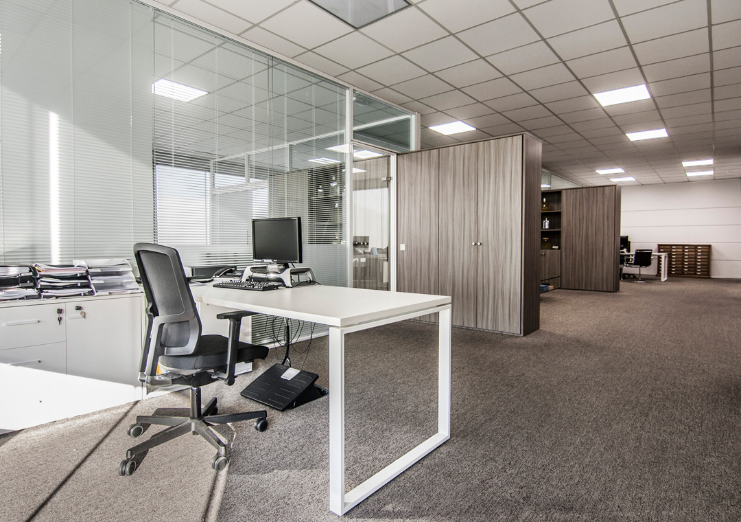 Cuando llevas años trabajando en un lugar, muchas veces no eres consciente de como de necesario es un lavado de cara del espacio de trabajo, para conseguir un lugar confortable, y de cómo el lugar influye en su ánimo y rendimiento. Y más aún si es el lugar representativo de la empresa donde recibes a tus clientes y proveedores. Sin duda a esta empresa, las oficinas de dirección necesitaban un lavado de cara a fondo, y aunque se nos pidió no tocar los techos, se planteó una nueva disposición de todo el conjunto. Los dos despachos de dirección a los extremos, con sus asistentes ante ellos, y un espacio de reunión entre ambos, con una pequeña zona de espera.