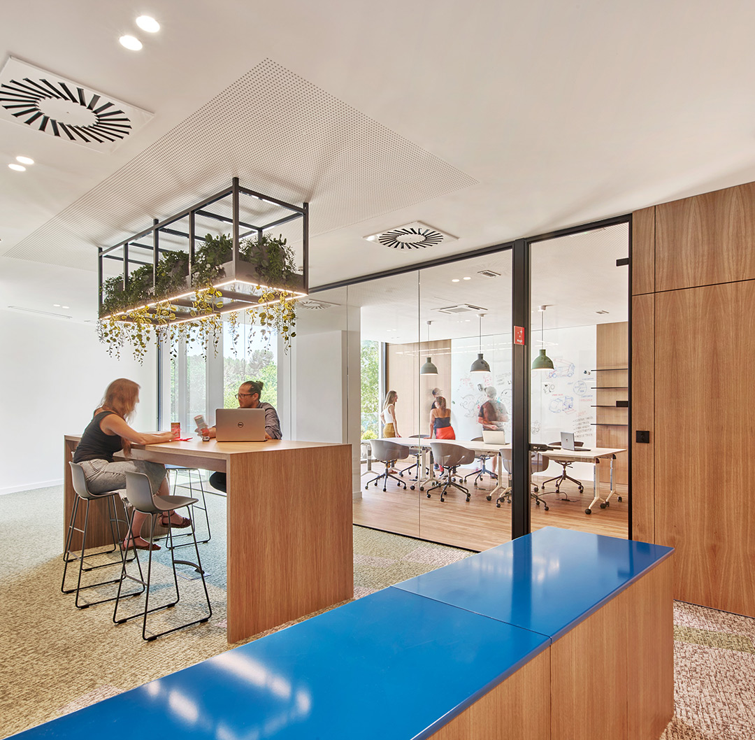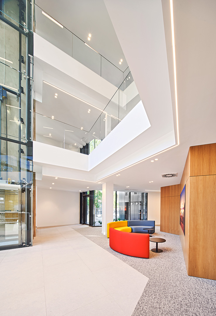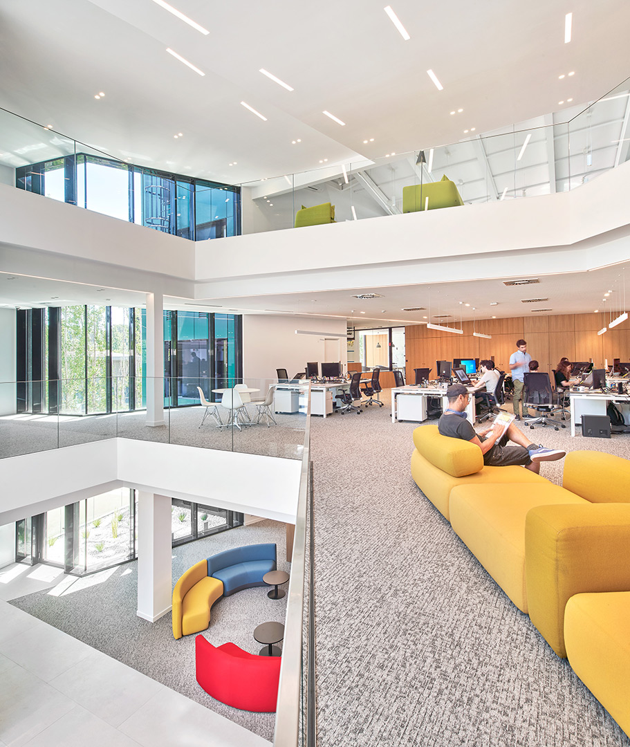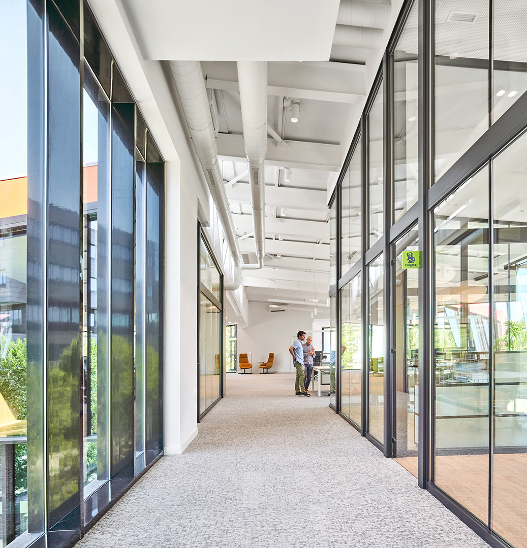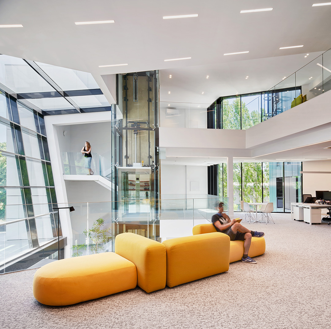 Es el último proyecto en colaboración con OMA arquitectos, pero uno de los más ilusionantes, ya que siempre hace ilusión proyectar la sede corporativa de una empresa de juguetes, con los que juegan tus hijos. Es la oportunidad de devolverles el favor. La idea original era clara, aprovechar al máximo la forma triangular de la parcela, creando un monolito sin ventanas, pero que, a través de mordiscos en la piel, nos permitiese la entrada de luz por todas sus caras. A consecuencia de los mordiscos, aparecían los colores corporativos de MagicBox, el rojo, naranja y verde. La estructura del edificio es sumamente compleja, ya que evitamos al máximo la colocación de pilares interiores. Suficiente teníamos con la forma angulada de las plantas.