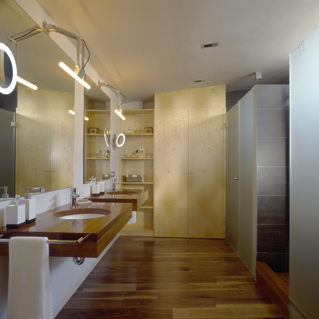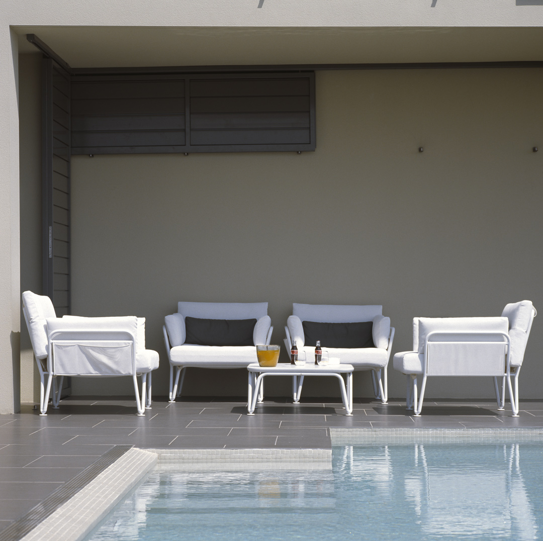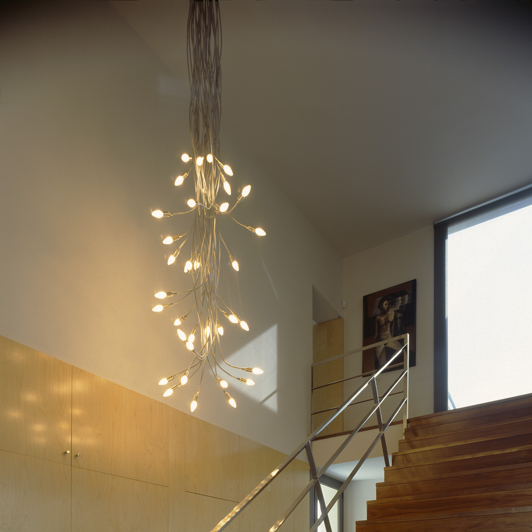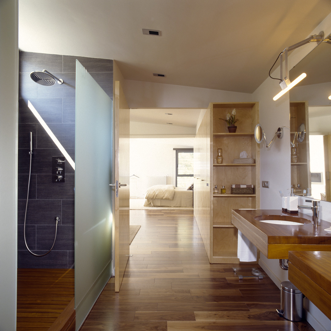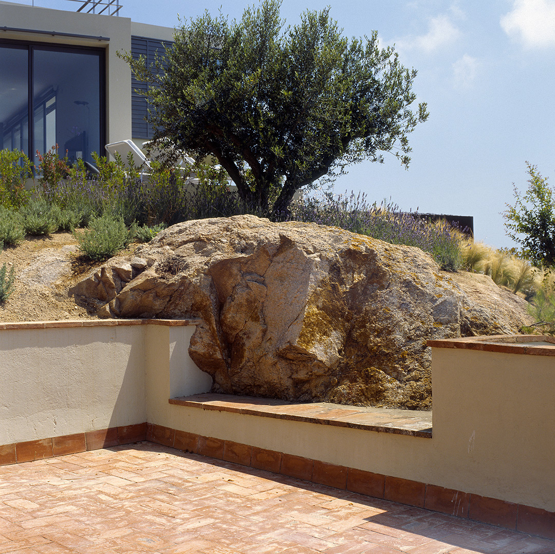 Aunque no lo parezca en principio, este proyecto es una reforma de una vivienda existente. En el momento en que se cursó el permiso, no se otorgaban licencias de obras para viviendas de nueva planta, y el proyecto se tuvo que adaptar a una vivienda existente, de la cual se aprovecharon solamente cuatro muros y todo el volumen del garaje; elemento que estaba fuera de la distancia mínima a vial, y se hubiera tenido que derruir. Todo el proyecto gira sobre el cuerpo donde se encuentra la escalera, y el patio contiguo a este. De ahí, se accede en la planta baja a la zona de día y a la habitación de servicio respectivamente; y en la planta superior a las dos únicas habitaciones, con sus baños respectivos. La zona de día, está compuesta por un salón-comedor con la cocina abierta, con aberturas en sus cuatro fachadas, y un pequeño despensa y lavadero. Mediante grandes aberturas, se aprovechó las vistas privilegiadas sobre el mar, y en planta baja, las continuas conexiones con el exterior.